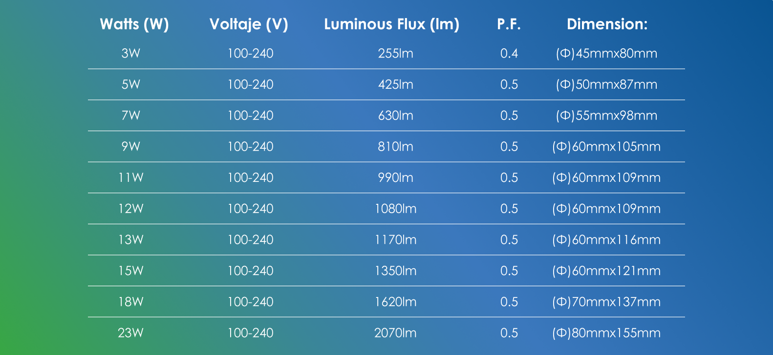 • Serie completa de 3 W a 25 W mejorada.