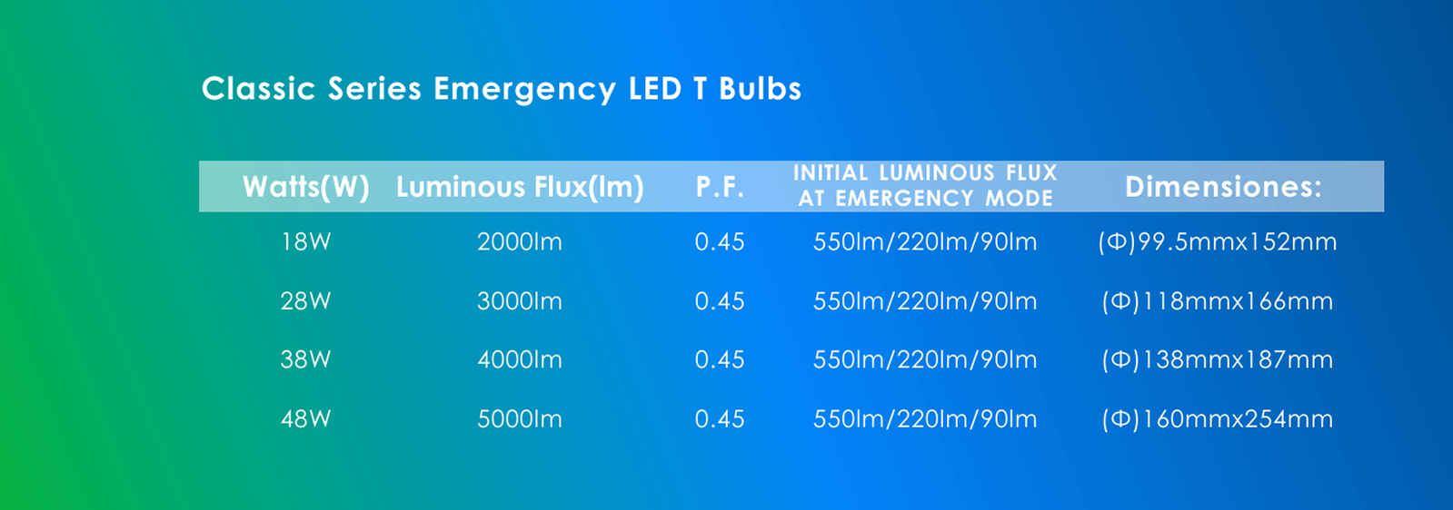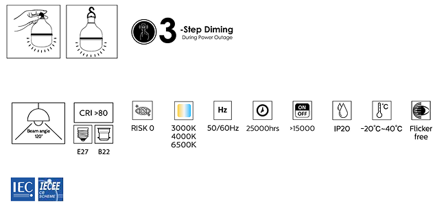 Equipado con componentes ópticos mejorados y un diseño de sistema optimizado, proporciona una iluminación de alto brillo en modo de emergencia. 3 niveles de brillo para elegir en modo CC durante un corte de energía.