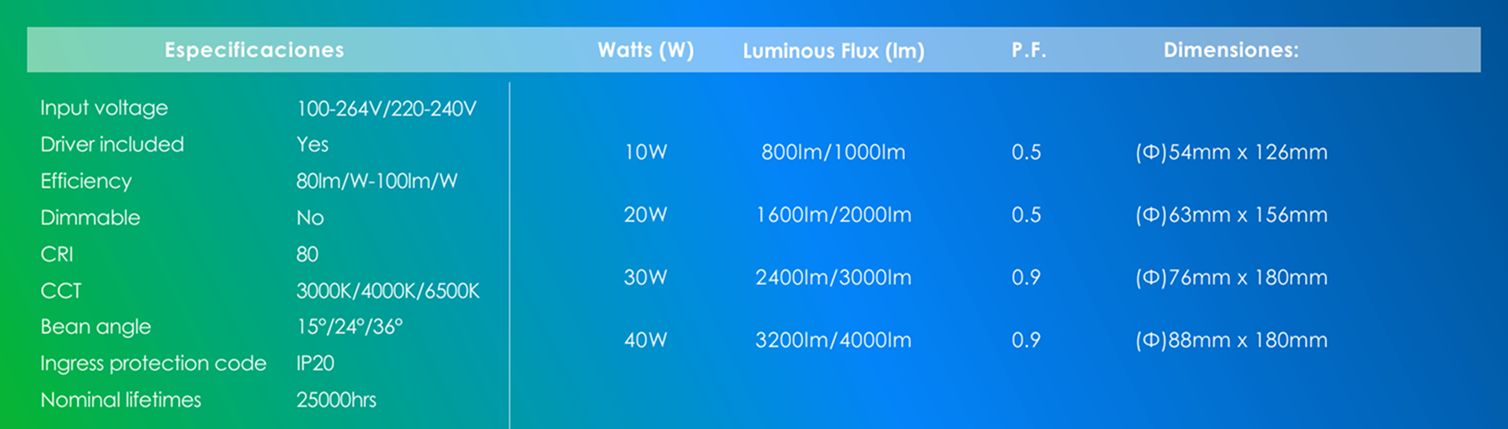 3 versiones: Riel/Empotrable/Superficial – Ángulo de haz disponible de 15°/24°/36°.